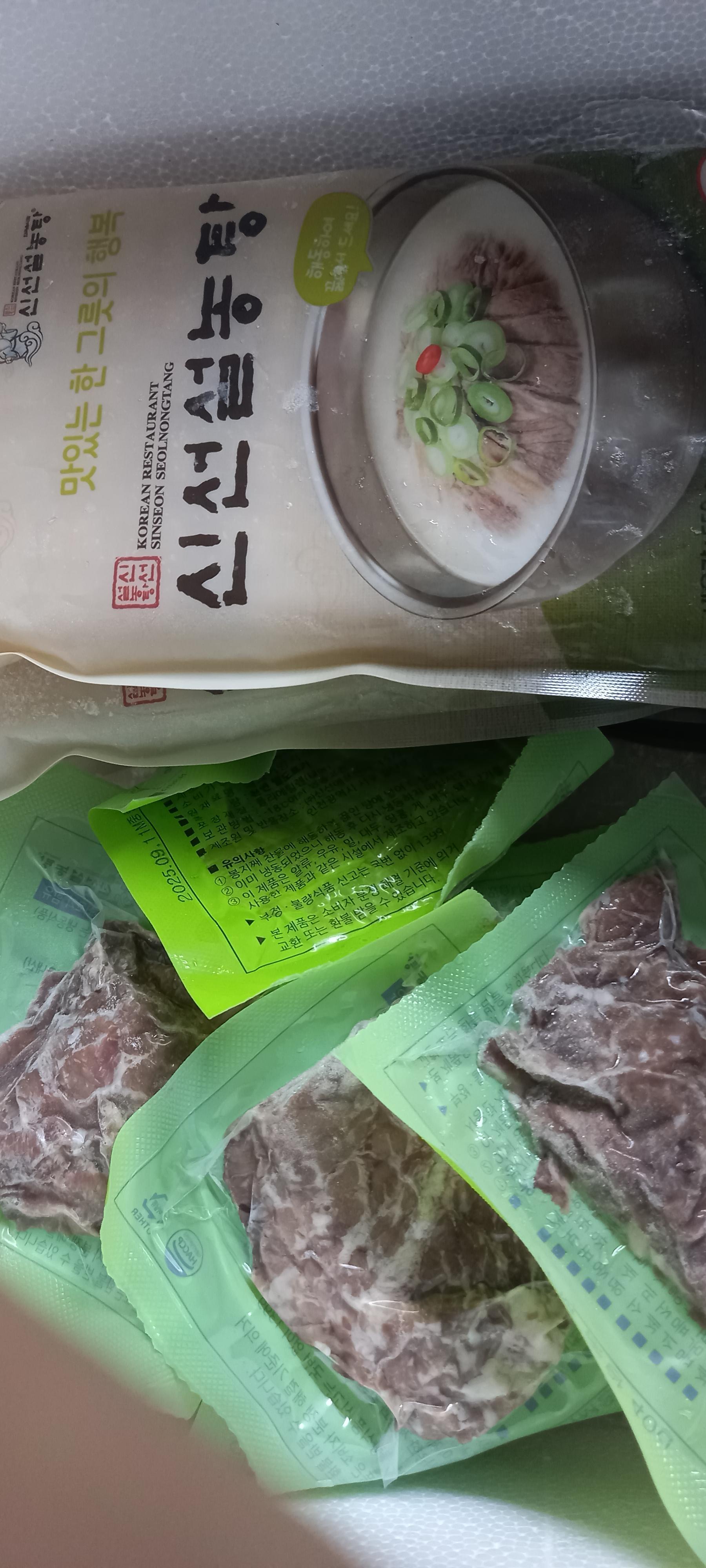 ★★★★★ 신선설농탕 대표세트 집에서 간편하게 배달오면 김치랑 무와 함께 참 파도 함께 편하게 집에서 먹을수 있어서 편해요 전자렌지나 냄비에 설렁탕을 끓이기만 하면 돼요